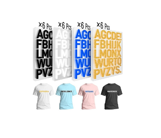 HTV Vinyl Set 24 Folii Cu 624 Litere, 22cm x15 cm, Culori Negru, Albastru, Alb, Auriu