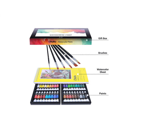 Ohuhu Set 36 Acuarele 12 ml/Tub+6 Pensule Profesionale Multicolor Y30-80700-22