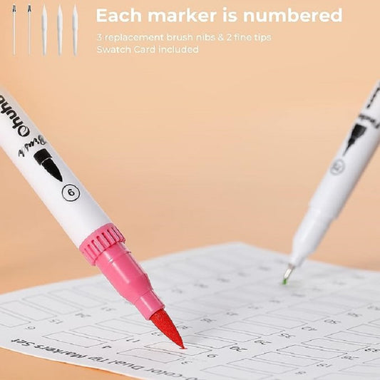 Ohuhu Maui Series Set 60 Markere, Baza Apa, Dual Tips Brush&Fineliner, Multicolor Y30-80400-14
