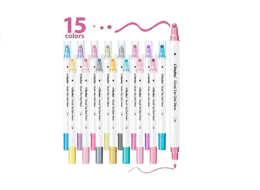 Ohuhu Set 15 Markere, Baza Apa, Dual Tips Fine&Dot, Multicolor Y30-80600-41