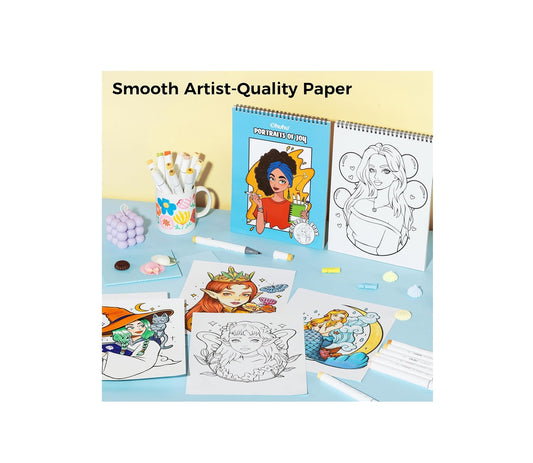 Ohuhu Carte De Colorat „Portraits of Joy” –Ohuhu 40 Modele Față-Verso, Hârtie Groasă, Spirală Sus, 20x25 cm, Y44-83000-62