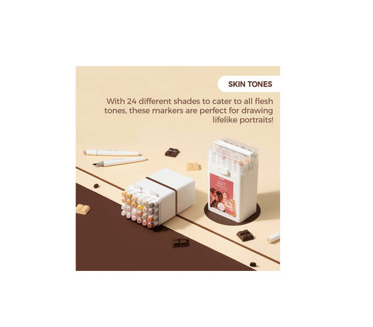 Ohuhu Kaala Series Set 24 Markere, Baza Alcool, Dual Tips Slim Broad&Fine, Skin Tones Y30-80402-36