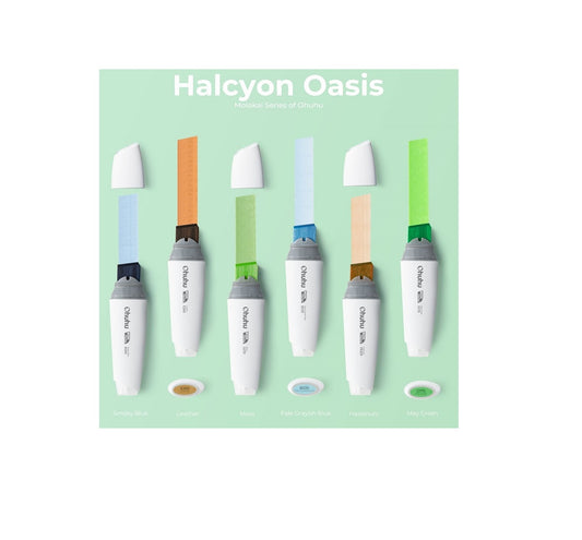 Ohuhu Molokai Set 6 Markere, Baza Alcool, Varf Extra Lat, Halcyon Oasis Tones Y30-80402-40