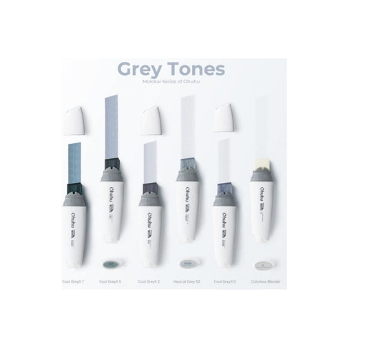 Ohuhu Molokai Set 6 Markere, Baza Alcool, Varf Extra Lat, Grey Tones Y30-80402-42