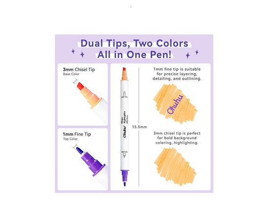 Ohuhu Set 16 Markere Highlighters, 32 Culori, Vârf Dublu Dalta Si Fin, Culori Duble, Bază Apă, Multicolor, Y30-80601-40
