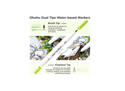 Ohuhu Set 60 Markere Ohuhu Paper Friendly, Bază Apă, Fără Peeling, Varf Dublu Brush & Fineliner, Non Toxic, Y30-80601-39