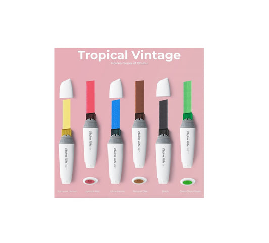 Ohuhu Molokai Set 6 Markere, Baza Alcool, Varf Extra Lat, Tropical Vintage Y30-80402-39