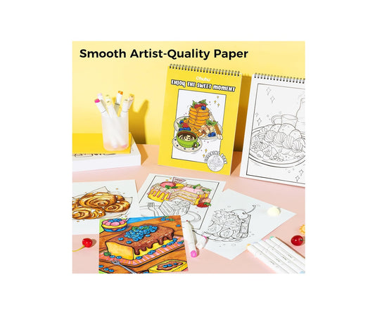 Ohuhu Carte De Colorat „Enjoy The Sweet Moment” – 40 Modele Față-Verso, Hârtie Groasă, Spirală Sus, 20x25 cm, Y44-83000-64