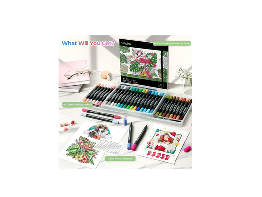 Ohuhu Set 48 Markere, Baza Apa, Dual Tips Brush&Fine Si Carte De Colorat Cu 36 De Coli 100% Rezistente La Sangerare Y30-80601-07