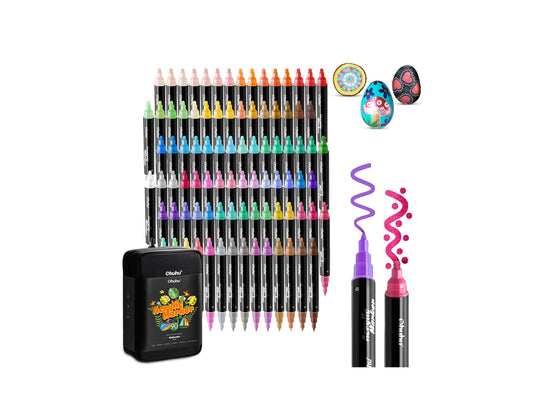 Ohuhu Set 90 Markere Acrilice, 24 De Culori Metalice, Varfuri Duble, Rotunde Si Fine, Vopsea Cu Opacitate Ridicată Pentru Pictat Pietre, Hartie, Ouă, Lemn, Sticlă, Ceramică Y30-80601-60