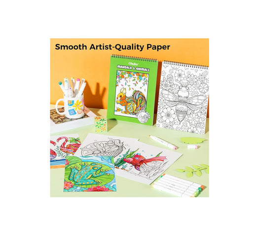 Ohuhu Carte De Colorat „Animals & Mandala” – 40 Modele Față-Verso, Hârtie Groasă, Spirală Sus, 20x25 cm, Y44-83000-63