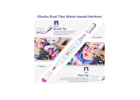 Ohuhu Kumimi, Set 24 Markere, Varf Dublu Caligrafic Brush & Dot, Bază Apă, Non-Toxic, Fara Acid, Multicolor Y30-80601-10