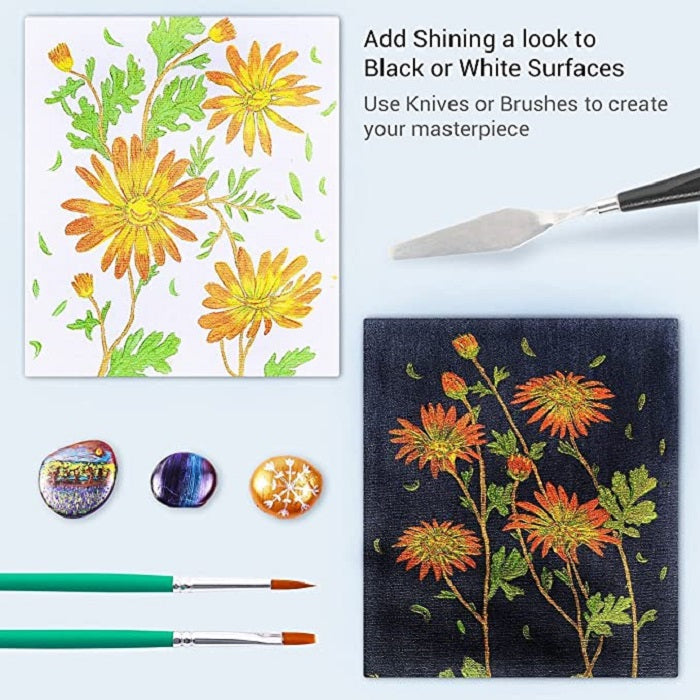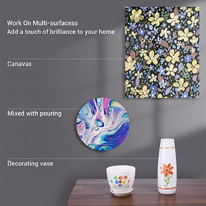 Sunteti gata sa deblocati posibilitati creative pe care nu vi le-ati imaginat niciodata? Doar adaugati aceste vopsele incredibile la orice opera de arta sau amestecati-le impreuna pentru tot felul de combinatii de nuante si tonuri. Urmatoarea ta capodopera este chiar dupa colt! Aceste vopsele sunt, de asemenea, flexibile si diluabile. Puteti amesteca mai multe culori sau le puteti dilua cu apa