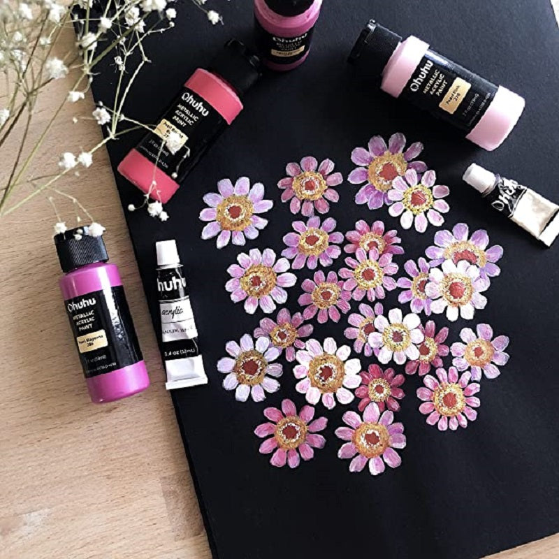 CALITATE INALTA, STRALUCITOR PE MULTE SUPRAFETE: Aderenta superioara a culorii si finisajul lucios fac ca acest set de culori acrilice de la Ohuhu sa fie usor de aplicat pe orice suprafata, de la panza intinsa, lemn, ipsos, hartie alb-negru, plastic, piatra, ceramica, perete interior. , pusculita, tesatura, mobilier din lemn, tabla cu creta artistica și multe altele. Odata ce culorile picturilor din lucrari de arta acrilice sunt uscate, acestea vor ramane vibrante mult timp, iar finisajul metalic adauga si mai multa vitalitate si unicitate pieselor tale de arta!