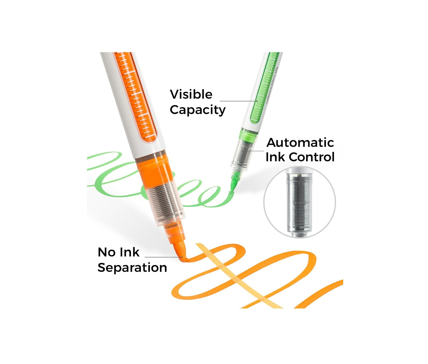 CONTROL AUTOMAT AL CERNELII ȘI AFIȘAJ VIZUAL AL VOLUMULUI: Experimentați creativitatea fără probleme cu markerele Ohuhu, concepute cu o structură lichidă directă și un regulator de precizie încorporat pentru un flux lin și uniform. O simplă agitare distribuie cerneala uniform - gata cu uzura cauzată de etapele tradiționale de presare. Fereastra vizuală convenabilă pentru volumul de cerneală vă permite să urmăriți cu precizie progresul picturii.