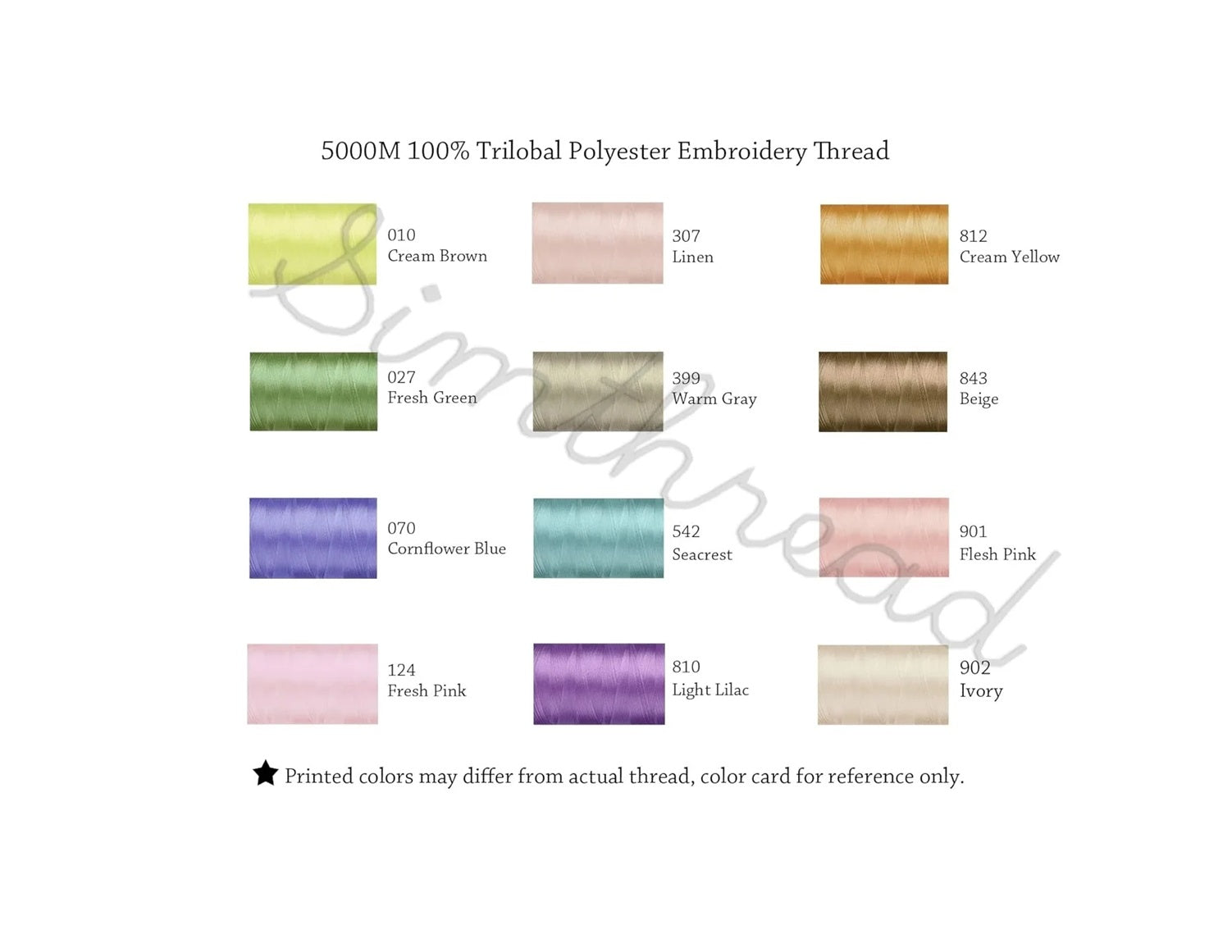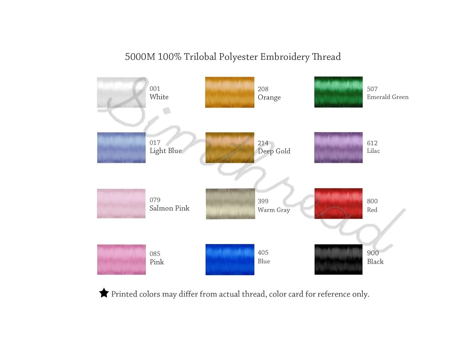 Conversie ușoară a culorilor: Aceste fire de brodat pentru mașină Simthread din poliester 5000M sunt concepute pentru a fi ușor convertite între sistemele de culori Brother și Madeira, ceea ce face ca potrivirea culorilor să fie convenabilă pentru toate proiectele dumneavoastră. (Notă: Pentru utilizatorii de mașini care lucrează acasă, recomandăm utilizarea suportului/suportului pentru fir Simthread pentru o livrare corectă a firului.)