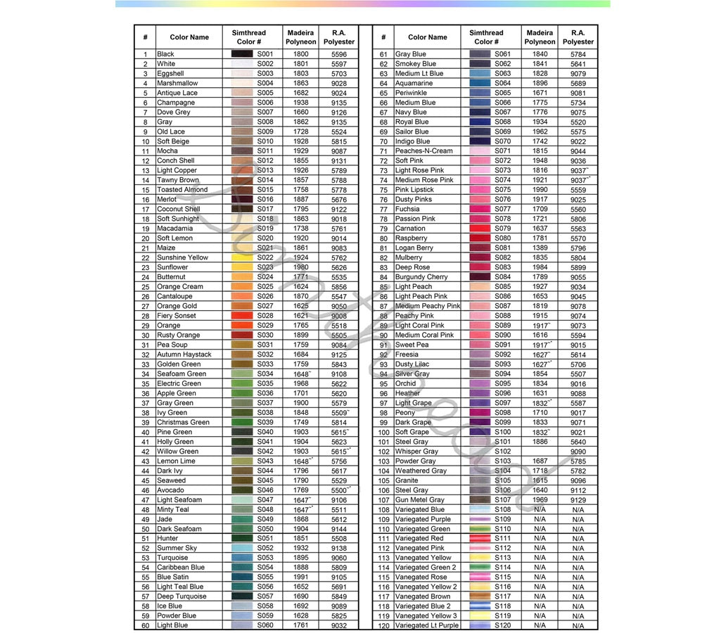 Noi 120 de culori: Renunță la elementele de bază Brother! Descoperă kitul nostru vibrant de ață de poliester cu 120 de culori, cu 107 nuanțe simple unice și 13 nuanțe pestrițe uimitoare - toate diferite de culorile Brother! Bucură-te de o gamă mai largă de culori, plus compatibilitate cu Madeira/Robinson-Anton (diagramă inclusă) și un fir de bobină pre-înfășurat bonus.