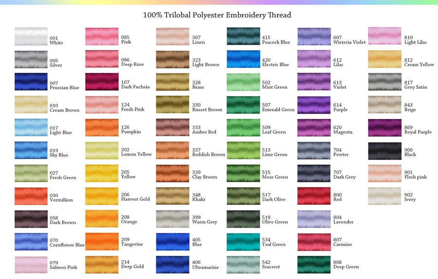 Culori rezistente la decolorare: Călcați și spălați cu încredere! Fir de brodat de 40 wt cu culori vibrante și durabile, care rezistă decolorării la călcare și spălare zilnică.