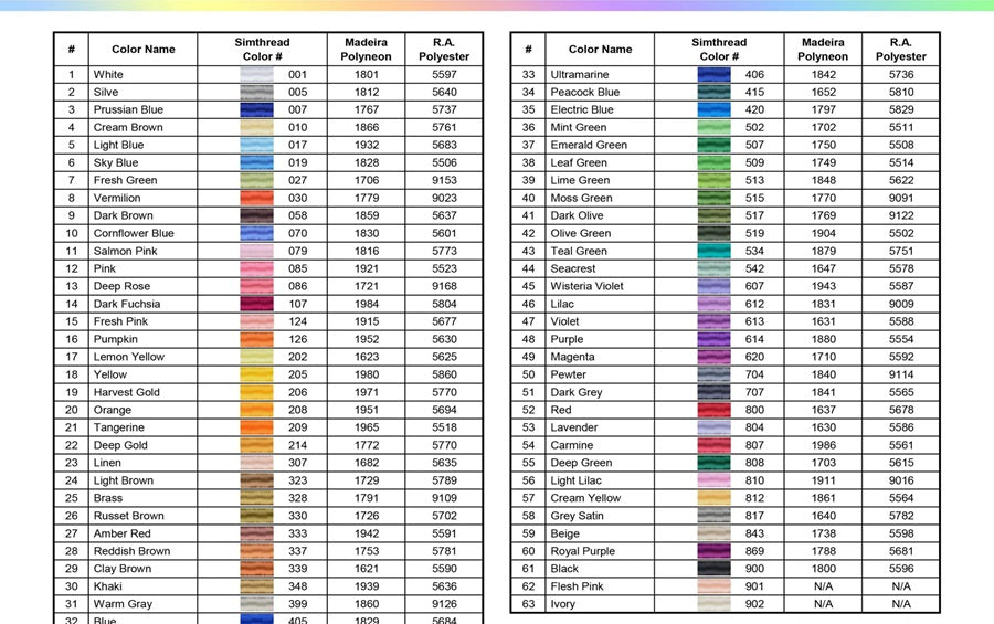 63 de culori Brother! Culori frumoase și strălucire intensă, 1000 de metri (1100 de yarzi) fiecare bobină, fire de 40 wt.
