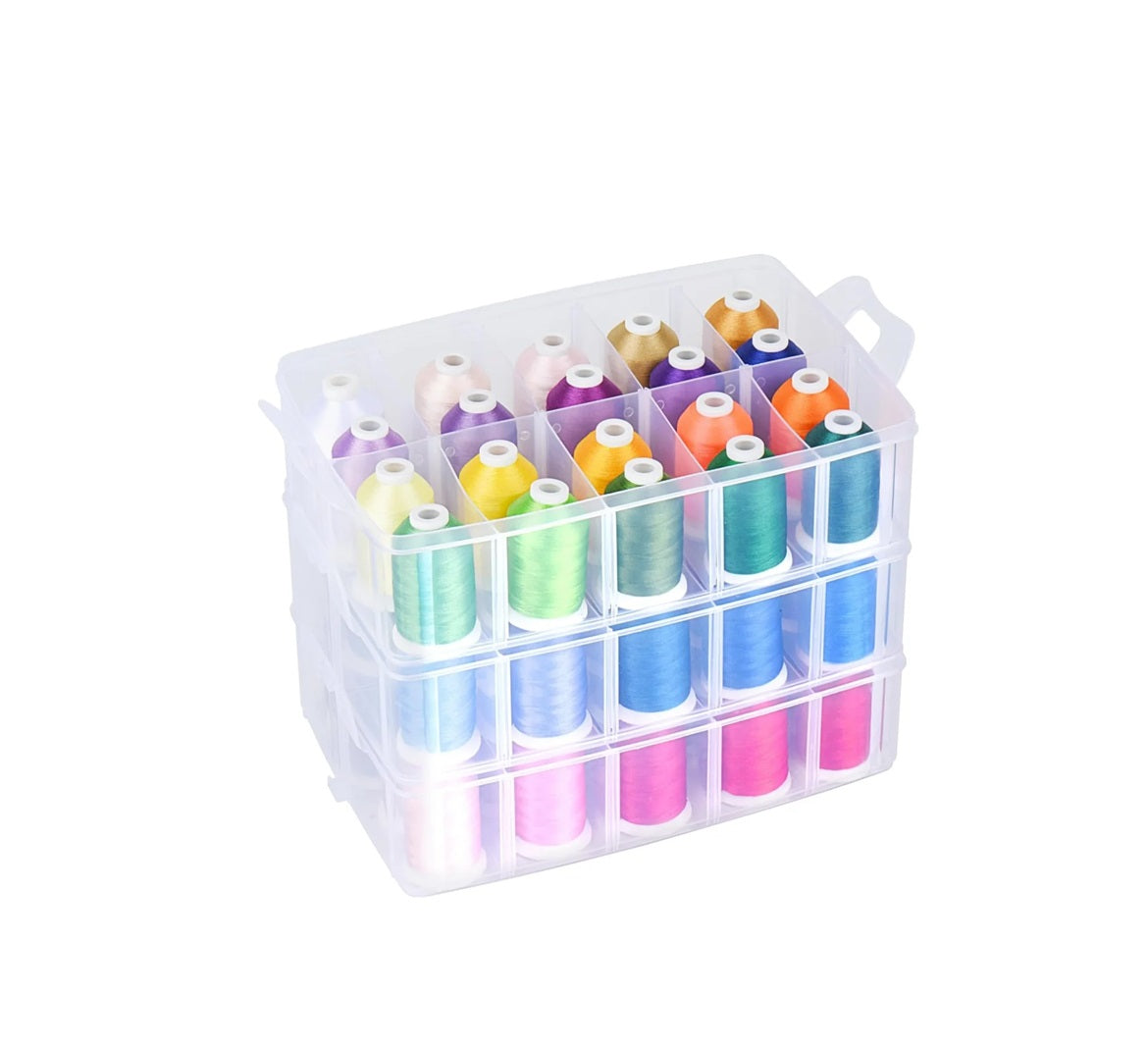 Set Ață De Brodat 63 Bobine - 500/1000 m, Culori Brother, Cutie Depozitare