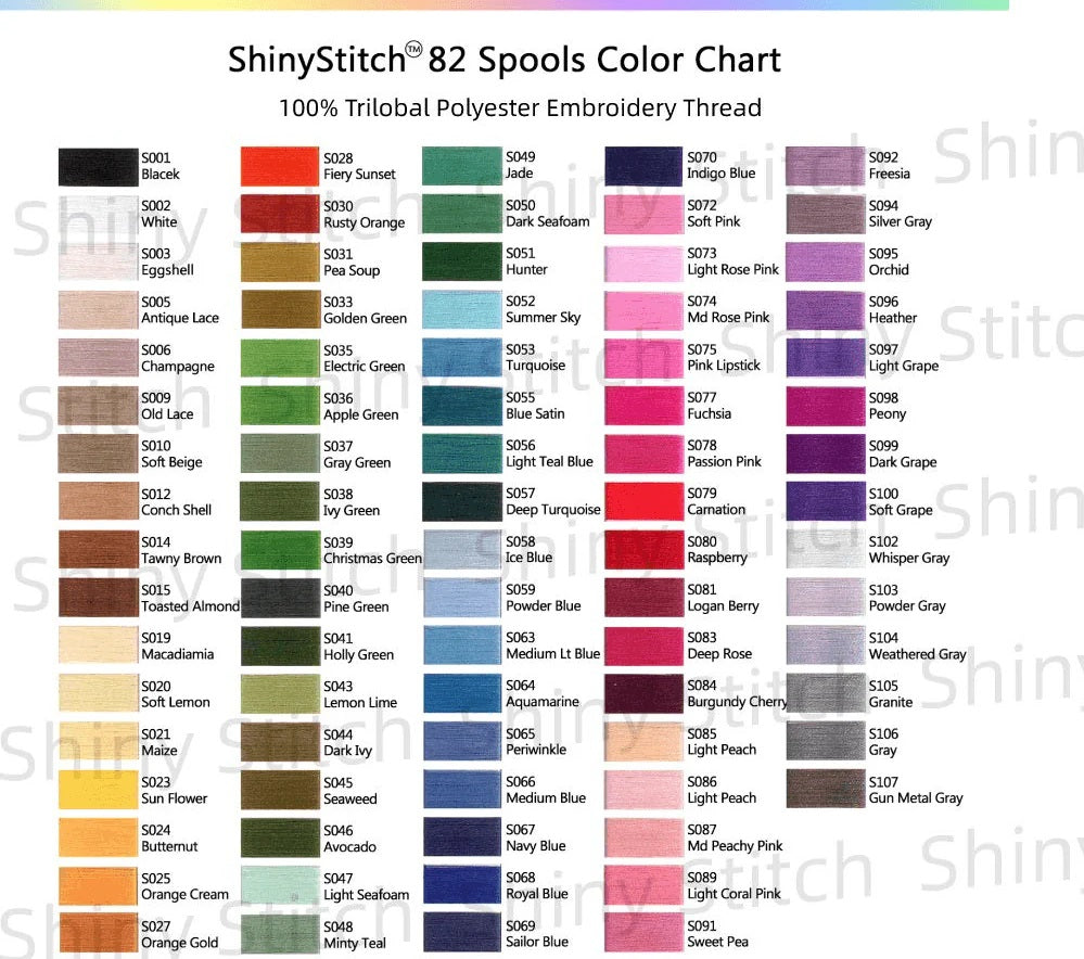 SET DE 82 DE BOBINE - ShinyStitch vă oferă un set de 82 de bobine de ață de brodat din poliester, disponibile în culori frumoase pentru a înfrumuseța și a lumina oricare dintre proiectele dvs.