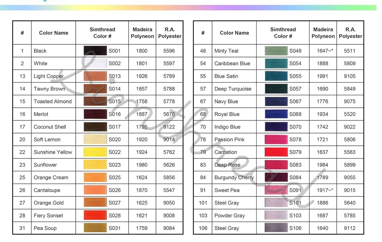 Adio ruperii: Fabricată din fir 100% poliester trilobal folosind tehnologia de a doua generație, această ață pentru mașini de brodat Simthread oferă o tenacitate mai mare, un luciu mai mare și culori mai vibrante, reducând semnificativ ruperea.